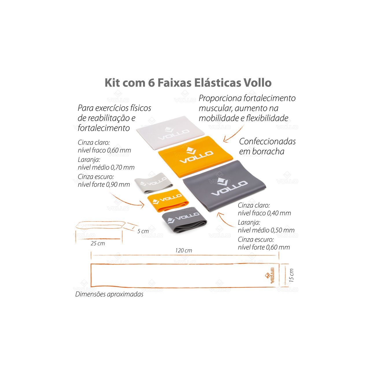 Principais Benefícios Kit com 6 Faixas Elásticas Vollo