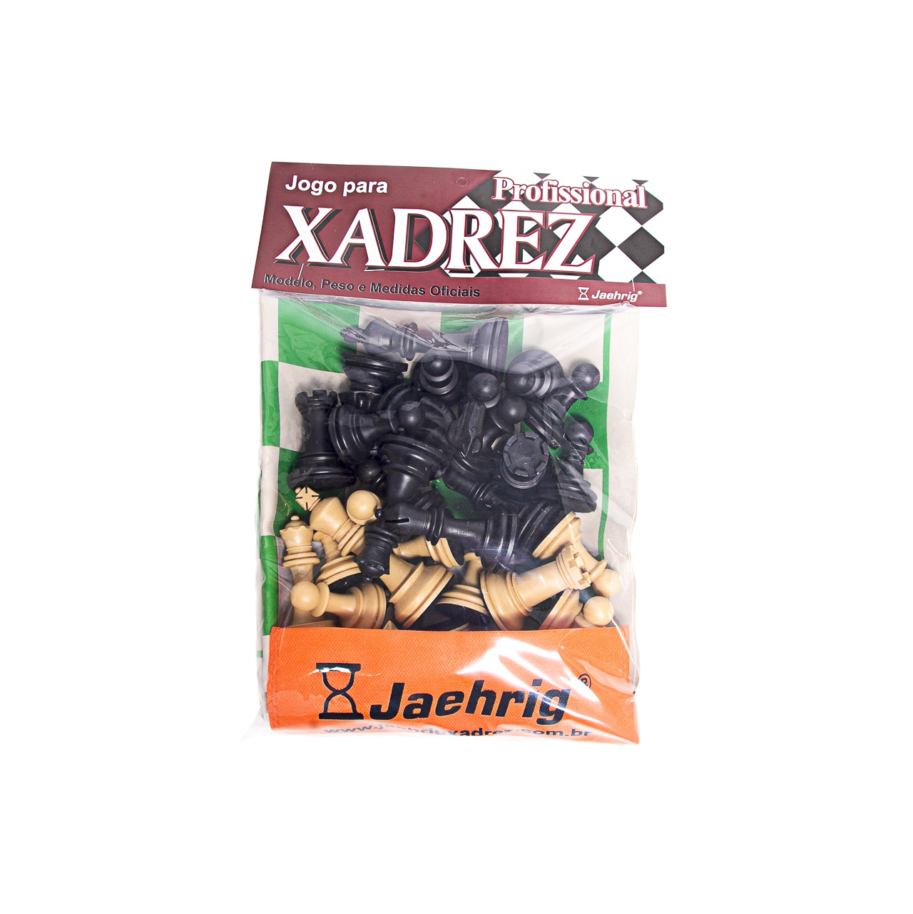 O Jogo de Xadrez Profissional Jaehrig é Modelo Staunton, com peso e medidas oficiais – Rei 10cm. Peças injetadas em Polistireno de Alto Impacto, de alta resistência e durabilidade, chumbadas* e base com feltro.
