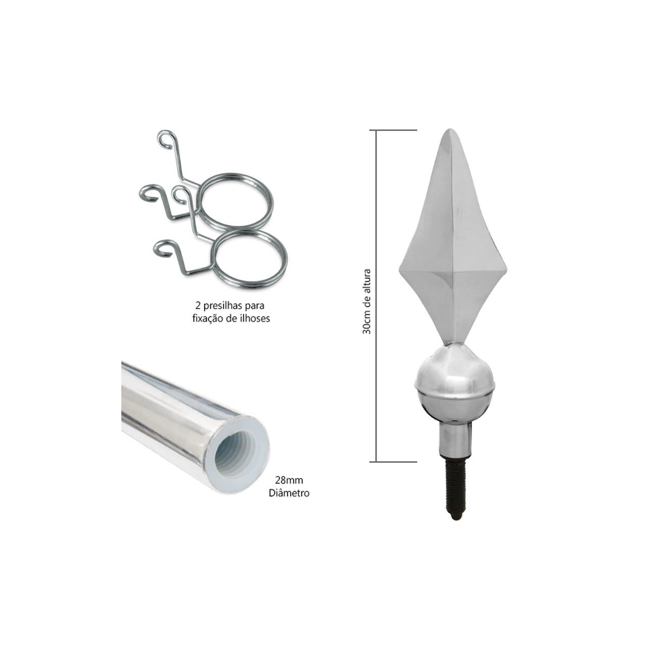 Embalado na caixa com 01 unidade de mastro, divido em 04 partes