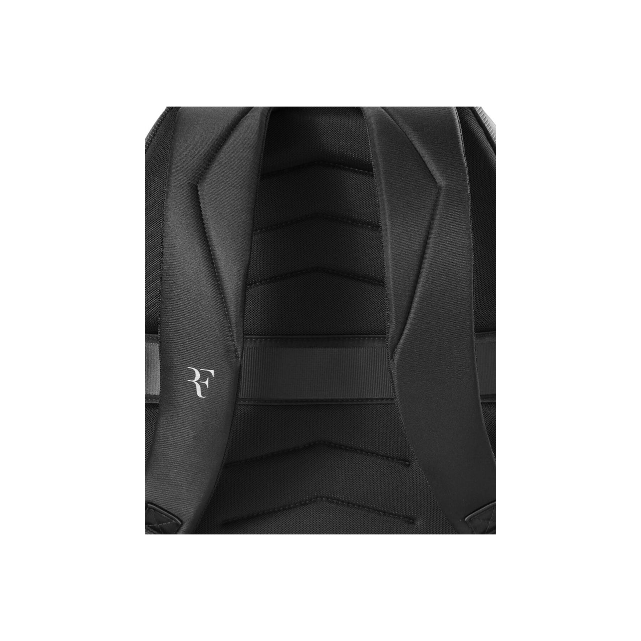 O logotipo RF e os puxadores de zíper personalizados com detalhes RF homenageiam o 20 vezes campeão de grand slams.