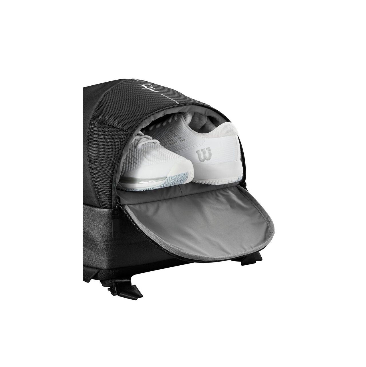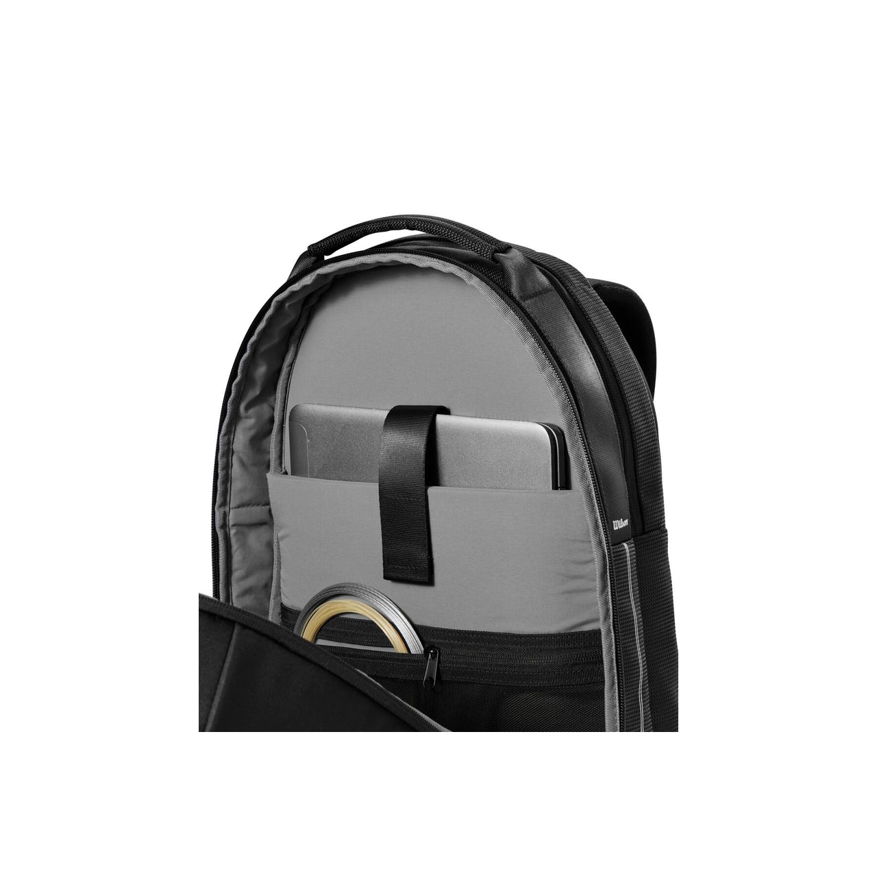 A mochila Wilson RF traz facilidade para os dias de treinamento e viagem. O design é inspirado nos majestosos Alpes Suíços, um tema que ecoa em toda a coleção de Roger Federer. Esta bolsa com discreta listra na cor branca vem com uma parte de trás macia e acolchoada e uma alça que se prende à sua bagagem internamente para um transporte mais suave. Ela oferece espaço suficiente para até duas raquetes, juntamente com um compartimento para seu tênis e um bolso para seus acessórios forrado de lã para pequenos objetos de valor.