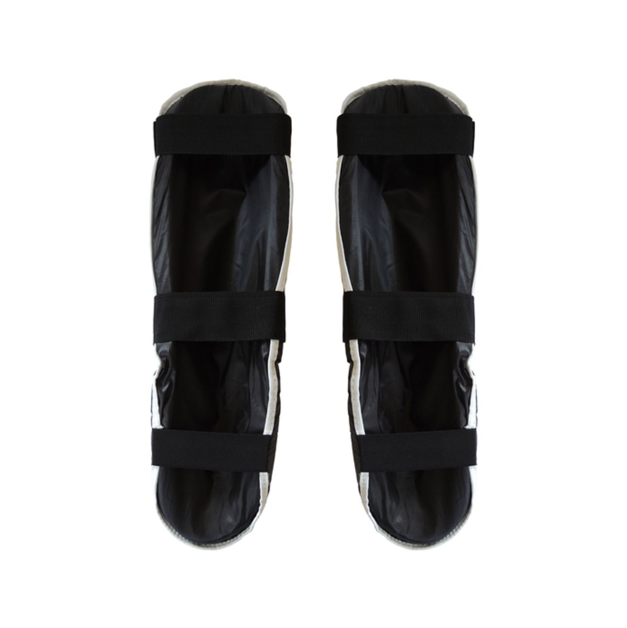 Caneleira versátil com 2 tiras de fita de nylon para regulagem do velcro e um elástico de 40 mm na sola do pé
