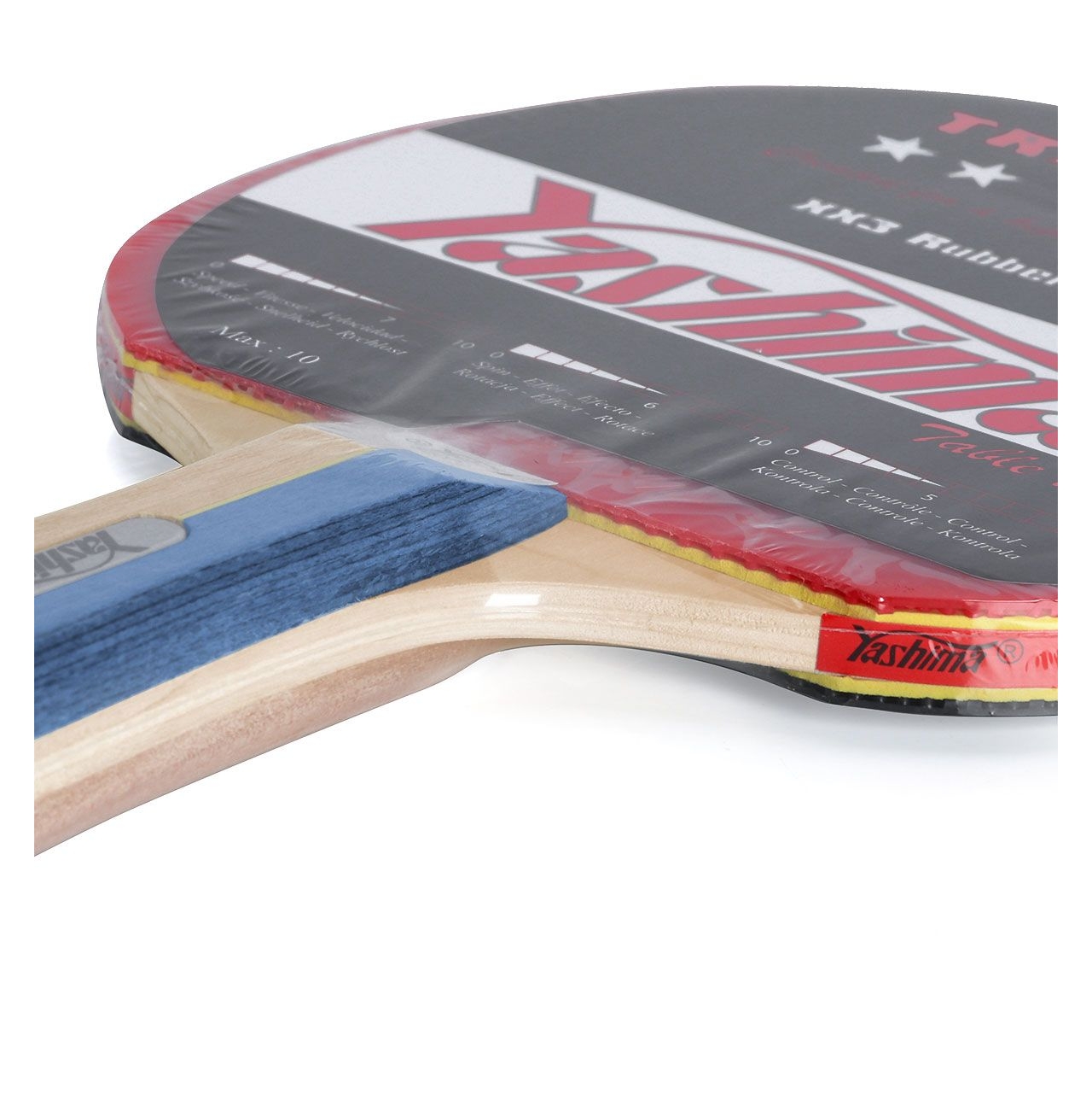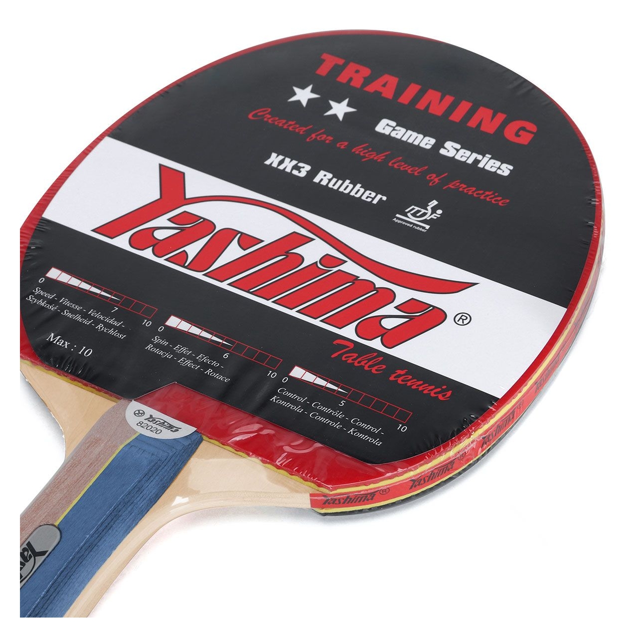 A Raquete de Tênis de Mesa Yashima 82020 possui borracha XX3 aprovada pela ITTF lisa em ambas as faces, seu cabo é redondo de estilo Clássico padrão, bem confortável.