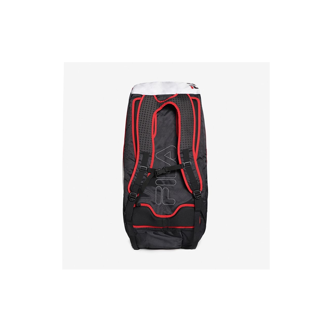 A Raqueteira de Tennis Fila Vincitori traz alças de mão com fecho em velcro, alças laterais removíveis, porta-raquete térmico, bolso externo, espaço para calçados, alças para costas e fechamento peitoral com fivela regulável. Dimensões (L x A x P): 77,5 x 32 x 36 cm. Capacidade: 90 L.