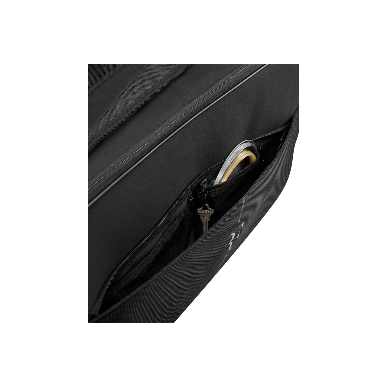 Compartimento com capacidade para armazenar e proteger até 15 raquetes