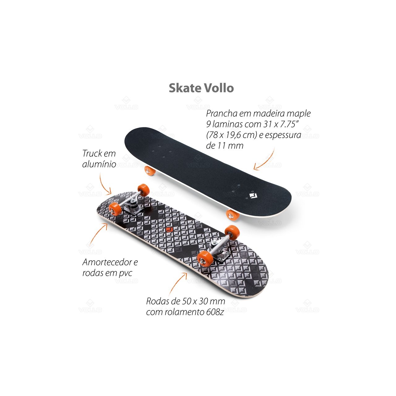 O Skate Vollo possui design moderno e foi desenvolvido cuidadosamente por materiais de excelente qualidade, que vão trazer maior segurança, controle e confiança para realizar diferentes manobras profissionais.